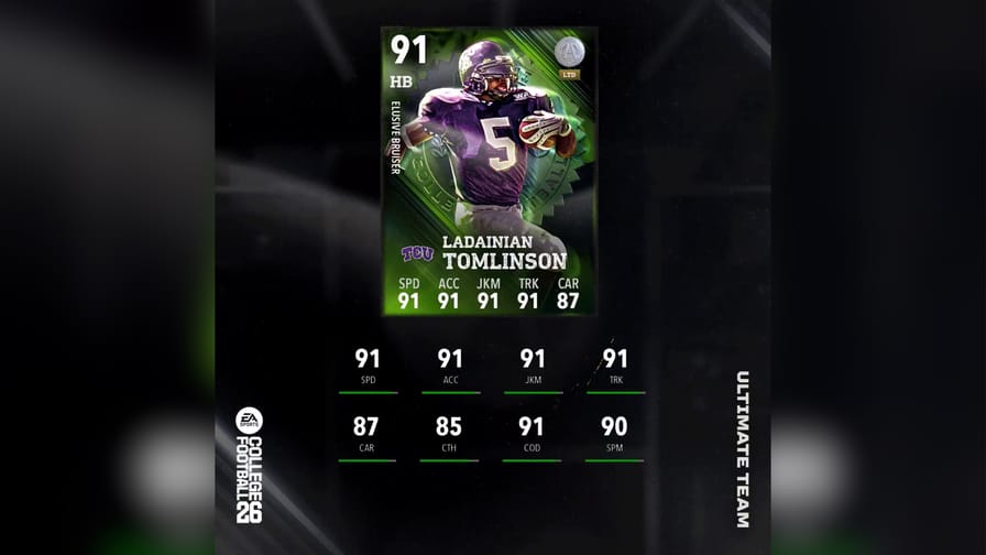 Alumni Vol. 12 went live earlier today. Volume 12 is the first of our Season 3 Alumni releases. LTDs and Champions now have three ability buckets. This release features LTDs in LaDainian Tomlinson and Denard Robinson, as well as Champions Justin Smith, Brandon Marshall, Tommie Harris, Brandon Spikes, and Jon Runyan. The Seasonal Champion was also revealed to be Antonio Cromartie.