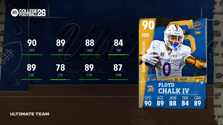 A new Season 2 drop went live earlier today. This week brings 91 OVR All-Season Jaishawn Barham from Michigan, and 90 OVR LTD Floyd Chalk IV from San Jose State. Floyd Chalk IV is the First HB with 90 Speed in-game. Both players will be available in packs until Thursday, Sept. 25th.