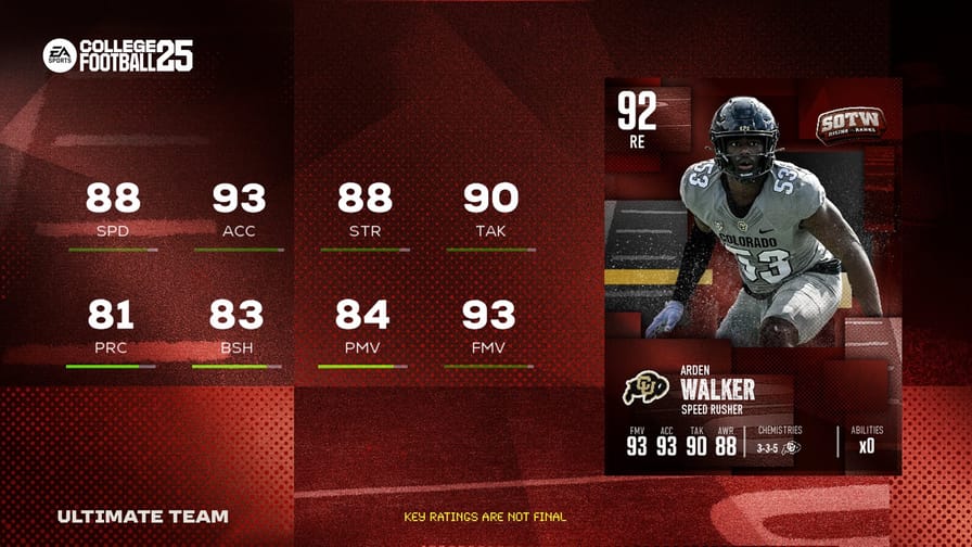 The new Rising the Ranks drop went live in CUT today, featuring 93 OVR LTD John Saunders Jr., 92 OVR Arden Walker, and 92 OVR Keylan Rutledge. It was a great week for John Saunders Jr. and his Ole Miss Rebels, as they took down the number 3 ranked Georgia Bulldogs. Saunders played a big role in the upset, contributing two pass deflections, a tackle for a loss, and an interception in the victory.