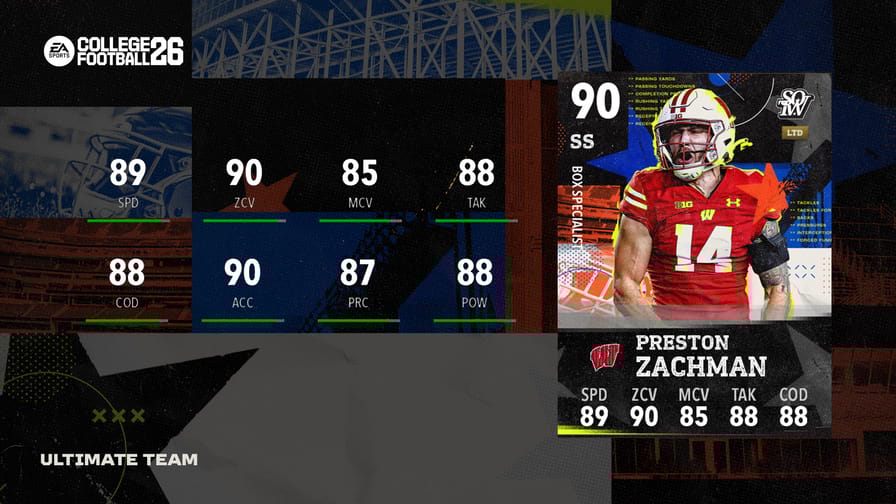 Stars of the week went live earlier today. Featuring Week 1's top performers, today's drop features 90 OVR LTDs in Darrius Heyward-Bey and Preston Zachman, as well as 89 OVR Champions Daniel Wingate and Justice Haynes. Preston Zachman helped the Badgers with 2 solo tackles and 2 interceptions in Wisconsin's 17 - 0 shutout of the Miami RedHawks.