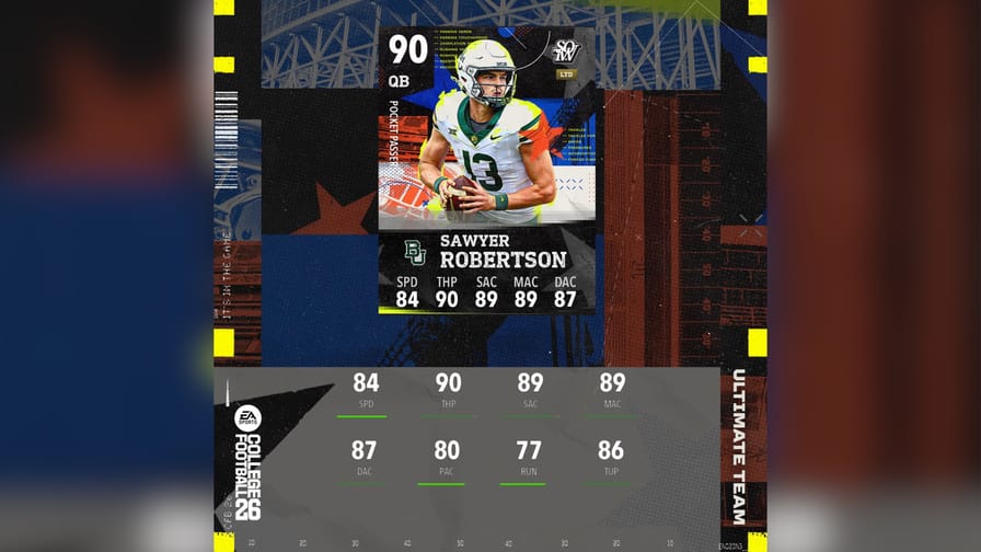 Stars of the Week went live earlier today, featuring the best performers of the week. This week features two 90 OVR LTDs in James Laurinaitis and Sawyer Robertson, as well as 89 OVR Champions Aamaris Brown and Brenen Thompson. Sawyer Robertson helped lead Baylor to a 48 - 45 double overtime victory over SMU, with 440 passing yards, 20 rushing yards, and 4 passing TDs.
