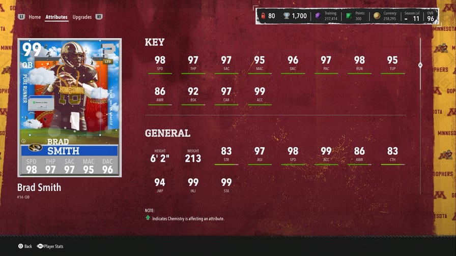 - Starts at 95 OVR and upgrades up to 99 OVR using upgrade tokens