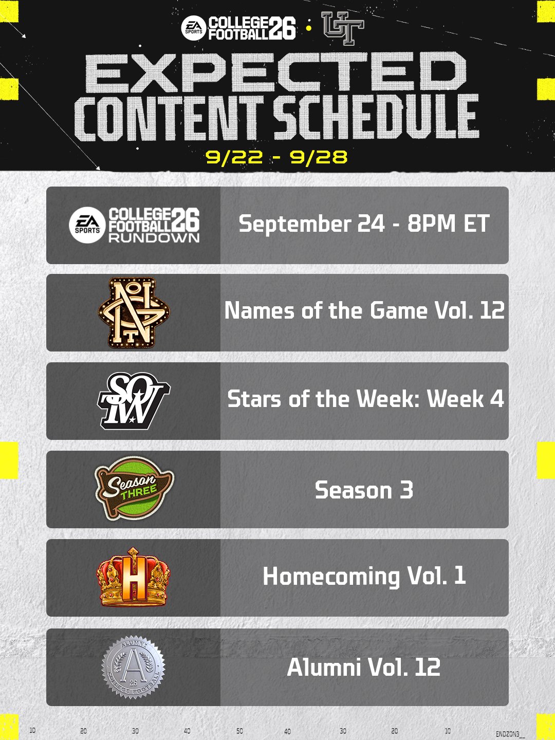 Re: Weekly CUT Schedule (9/22-9/28)